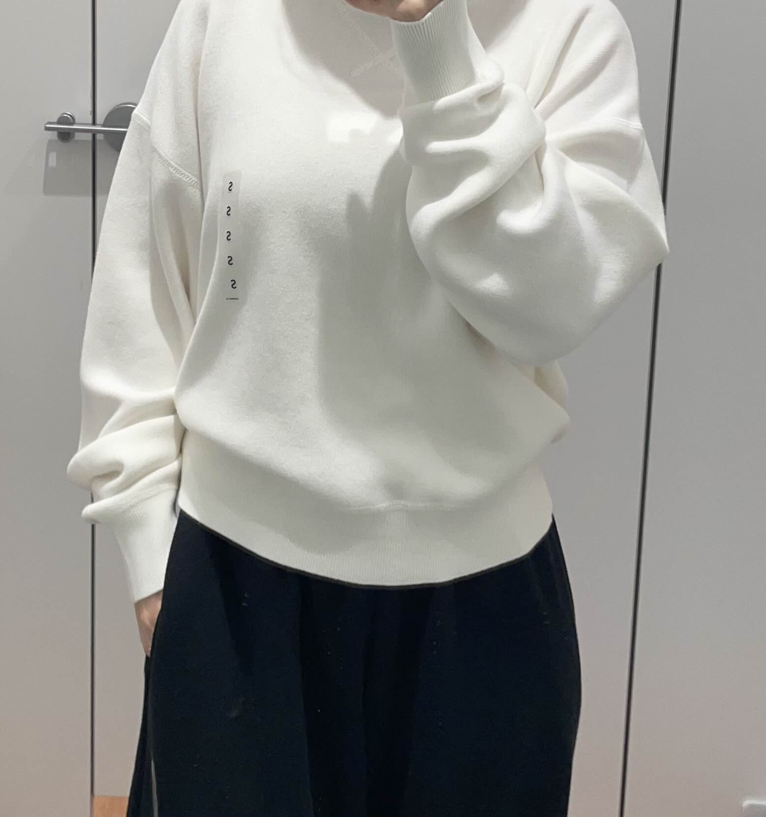 스무드 니트는 맨투맨 디자인인데 니트 소재로 되어 있어 좀 더 고급스러운 것 같더라고요. 디자인이 워낙 오버핏으로 나와서 s사이즈는 조금 큰 것 같은 느낌이 없지 않아 있지만 그래도 오버 사이즈로 입는 디자인이라 생각하면 감안할만한 것 같아요.