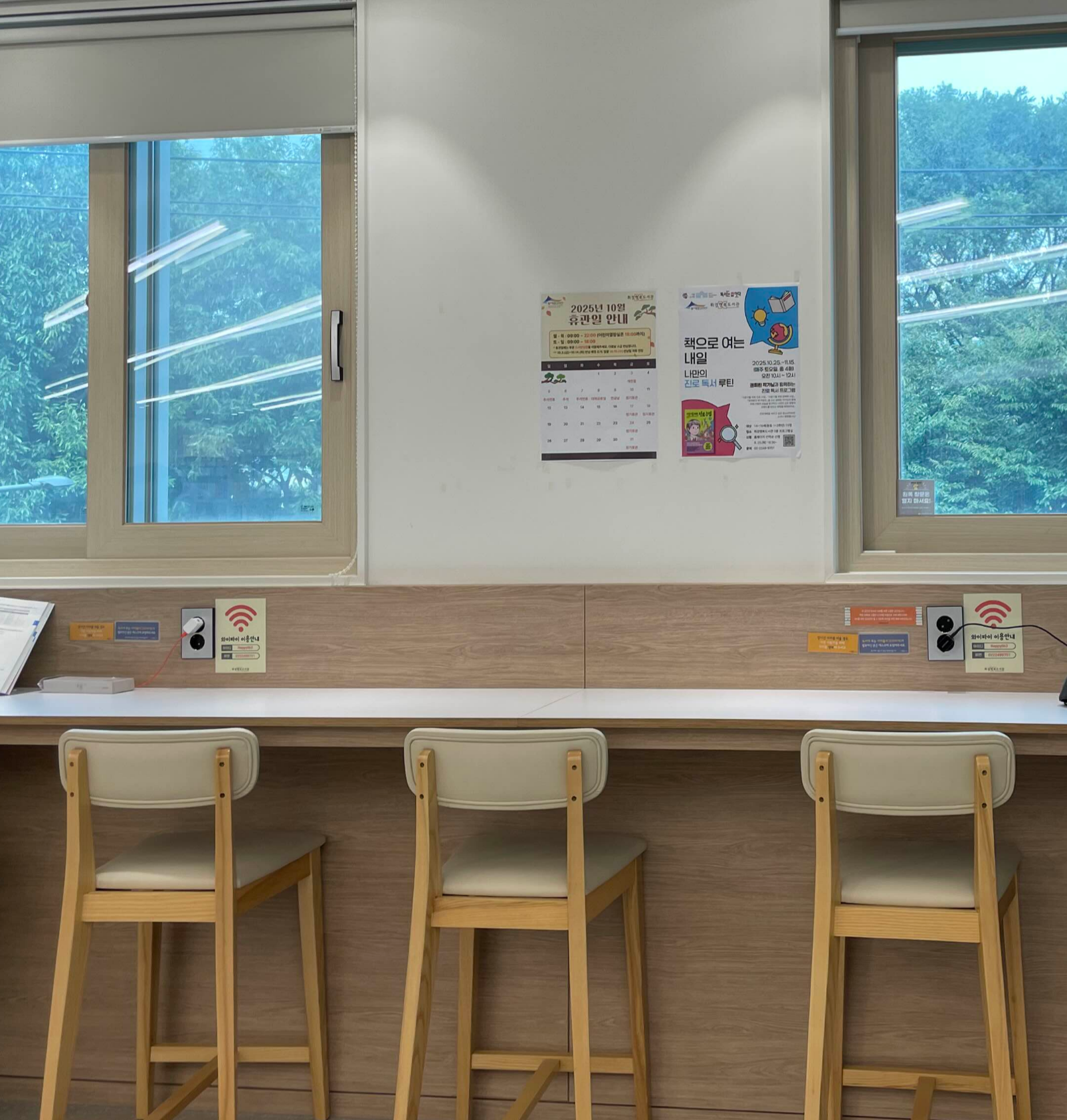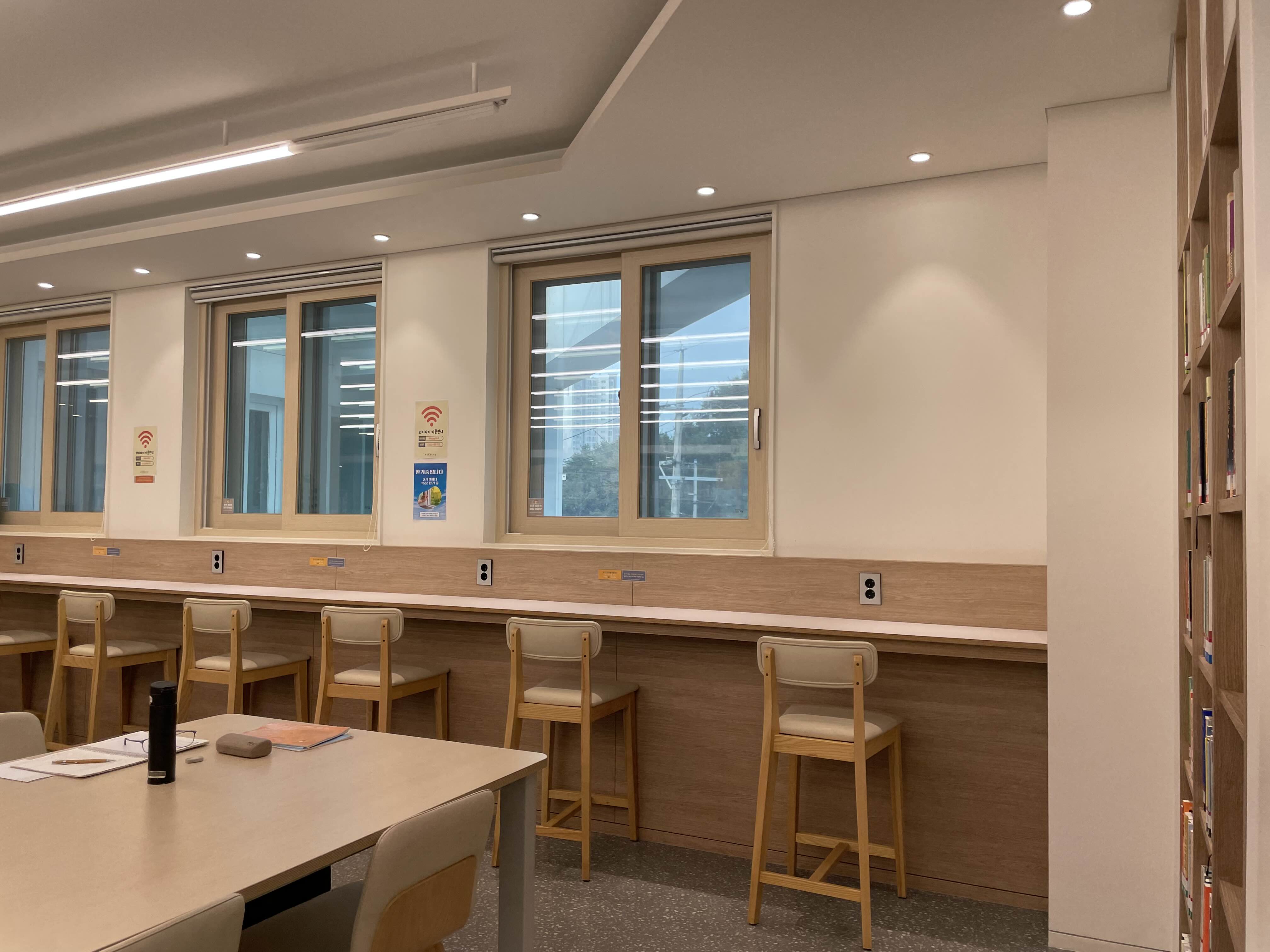 휘경행복도서관은 개관한 지 얼마 되지 않은 곳이라 내부가 너무나도 깨끗하고 조용하더라고요. 그리고 무엇보다 시설이 새것이라서 더 좋았어요. 살짝 카페 같은 분위기도 있었답니다.