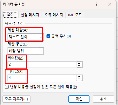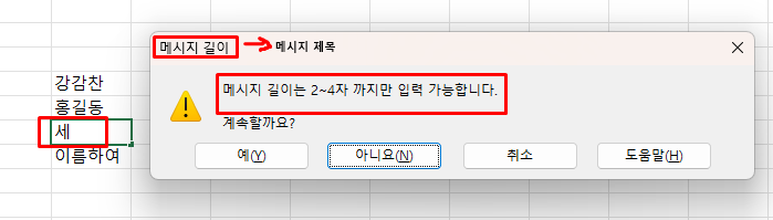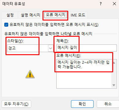 엑셀 오류 메시지 설정 방법
