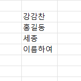 먼저 엑셀에서 아무 데이터나 입력합니다.