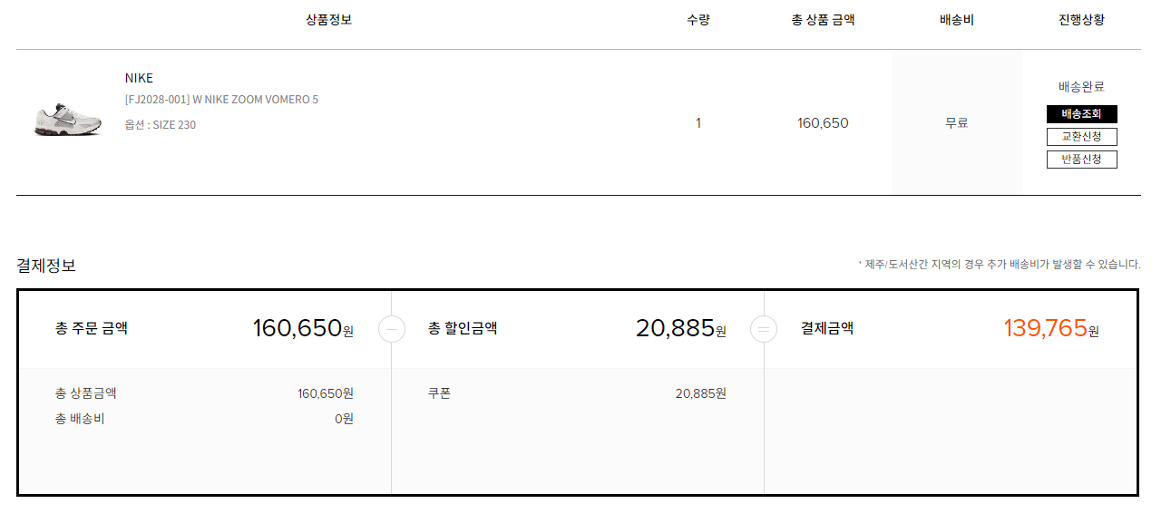 쿠폰이랑 카드할인까지 해서 14만 원 가까이에 구매했는데요. 공홈 정가에 비교하면 많이 할인받았다고 생각합니다. 인기 상품이라 그런지 사이즈 고민하는 사이에 다른 사이즈들 바로바로 품절되더라고요. 그래서 저도 바로 질렀답니다.