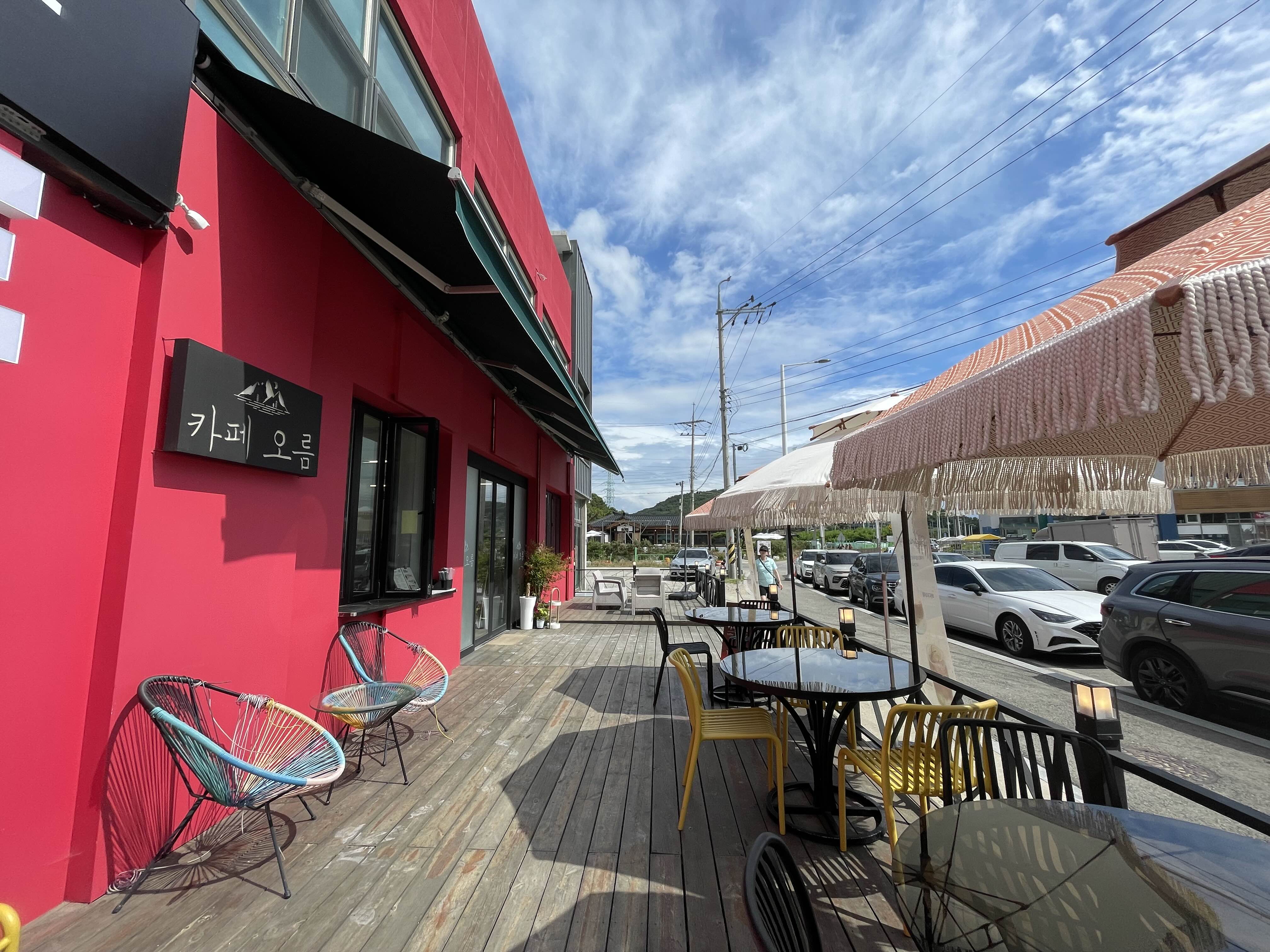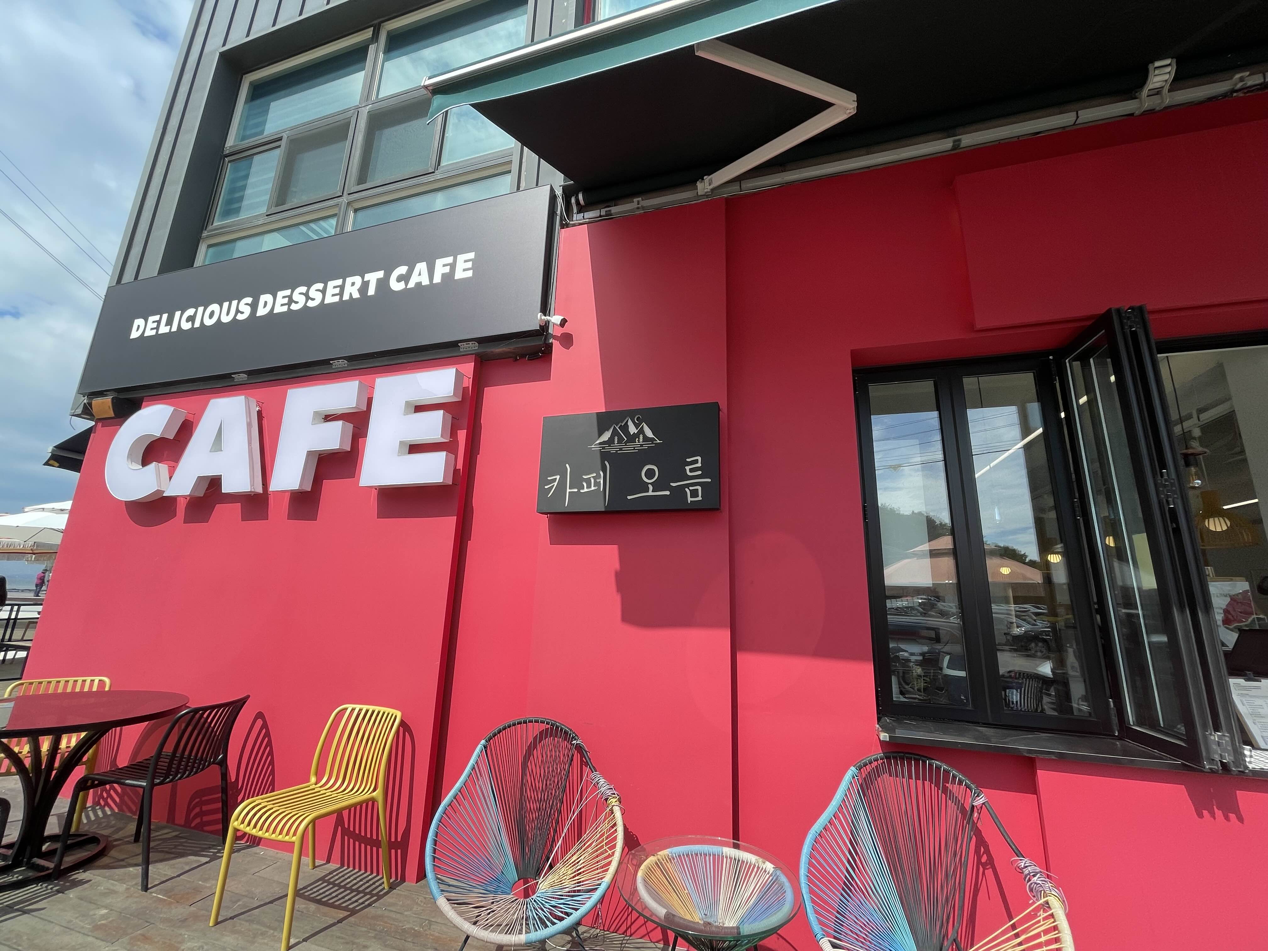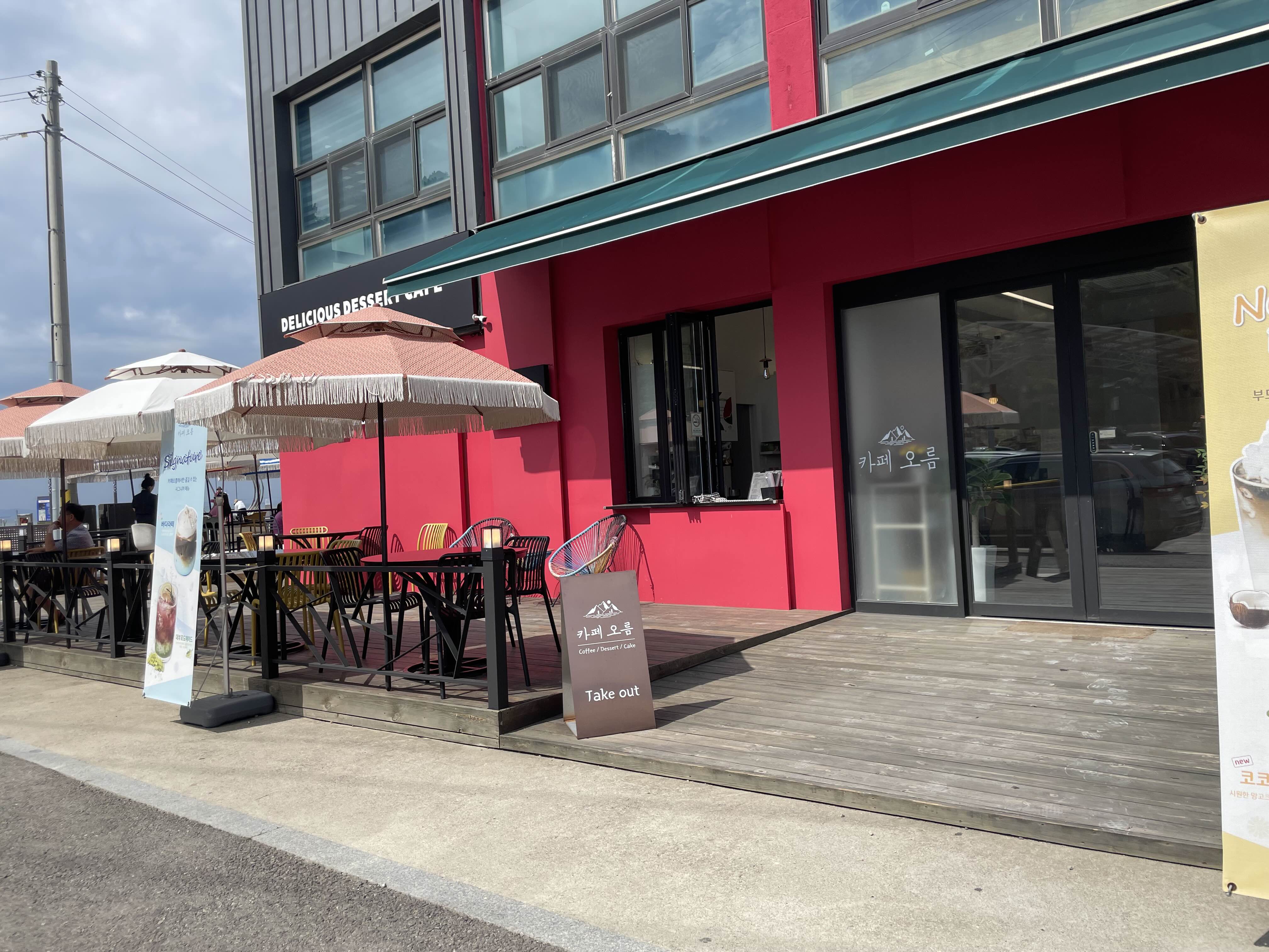 외관은 너무 예쁘게 꾸며서 주차장에 도착해서 저도 모르게 발걸음을 옮기게 되더라고요. 낙조전망대 가기 전 들어가 보게 되는 카페인 것 같아요.