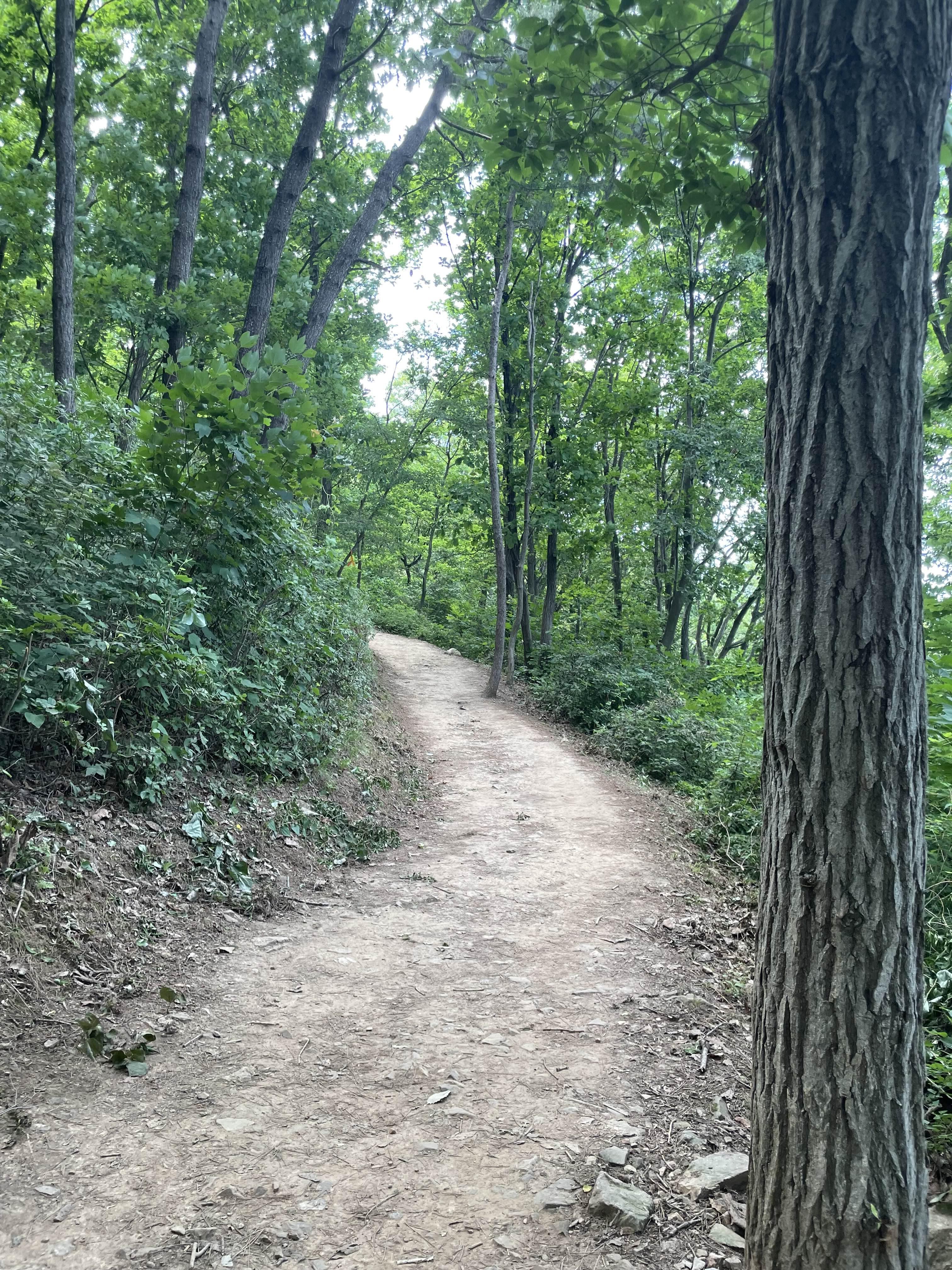 하지만 아무리 걸어도 다른 분들이 걸으셨던 계단길은 보이지 않았고 산길 숲 속길만 계속 보여서 조금 당황했는데요. 계속 걷다 보니 조금 무섭기도 하고 날도 비가 올 날씨라 어둑어둑해서 겁쟁이인 저는 당장이라도 뭐가 나올 것 같아서 가슴이 정말 콩알만 해 져서 숨을 죽이고 걷고 있었답니다.